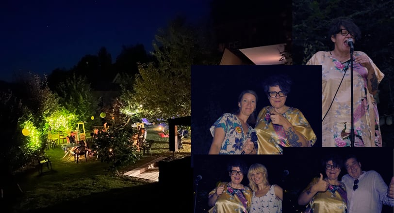 Zadnji nastop je bil kulturni program na čisto pravi 50-ki! Gostitelji_ca so zgradili oder za moj nastop. Si mislite? Oderček samo zame! Počutila sem se kot zvezda, ker se je zgodilo tudi prvo fotkanje s fani, hehe. Naučila sem se tudi, da znam napake na odru izpeljati, kot, da se niso zgodile in se samozavestno delati, da je vse v redu. Po nastopu sem se sicer počutila malo pri tleh, ker sem točno vedela, zakaj so se napake pripetile. Premalo vaje, draga moja, premalo vaje. Vaja je vse. Naravne danosti in talent te lahko držijo do neke mere, ampak raven profesionalnosti se zgradi skozi vajo. In tudi vsak nastop je vaja. Vaja v nastopanju. 8 nastopov sem imela, a od sebe pričakujem, da sem z odrskim nastopom tako, kot da sem oddelala 200 koncertov s cover bandom po veselicah in beznicah, naokrog po Nemčiji, kot na primer Nuša Derenda, preden je postala avtorska pevka.